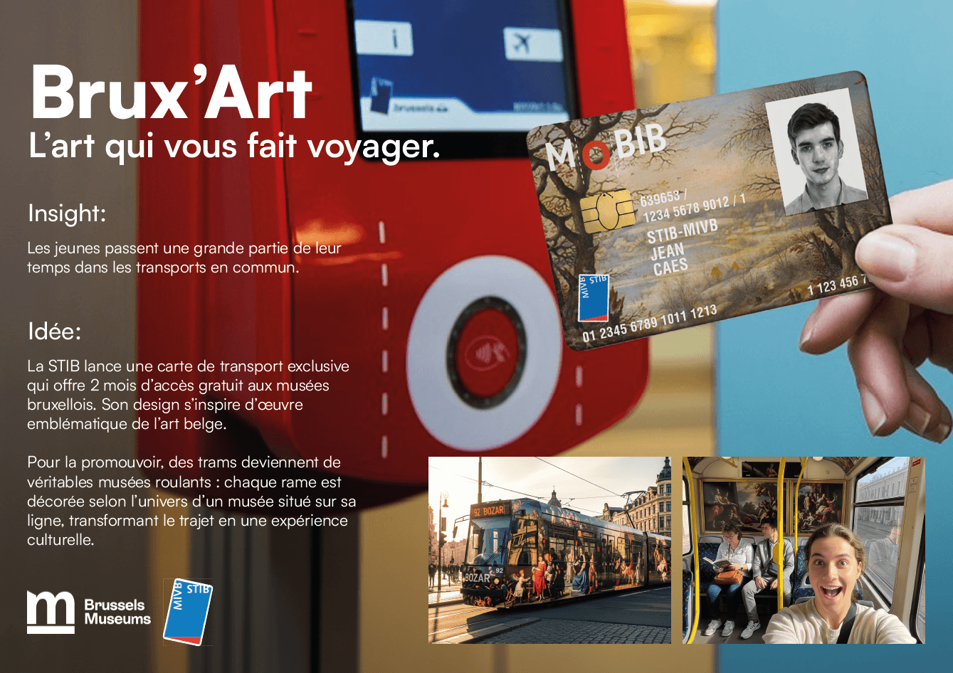 Enhance young people’s STIB subscriptions by offering them a free museum pass during the holidays, while making their journeys cultural, surprising, and interactive through the transformation of metro lines into mobile museums.